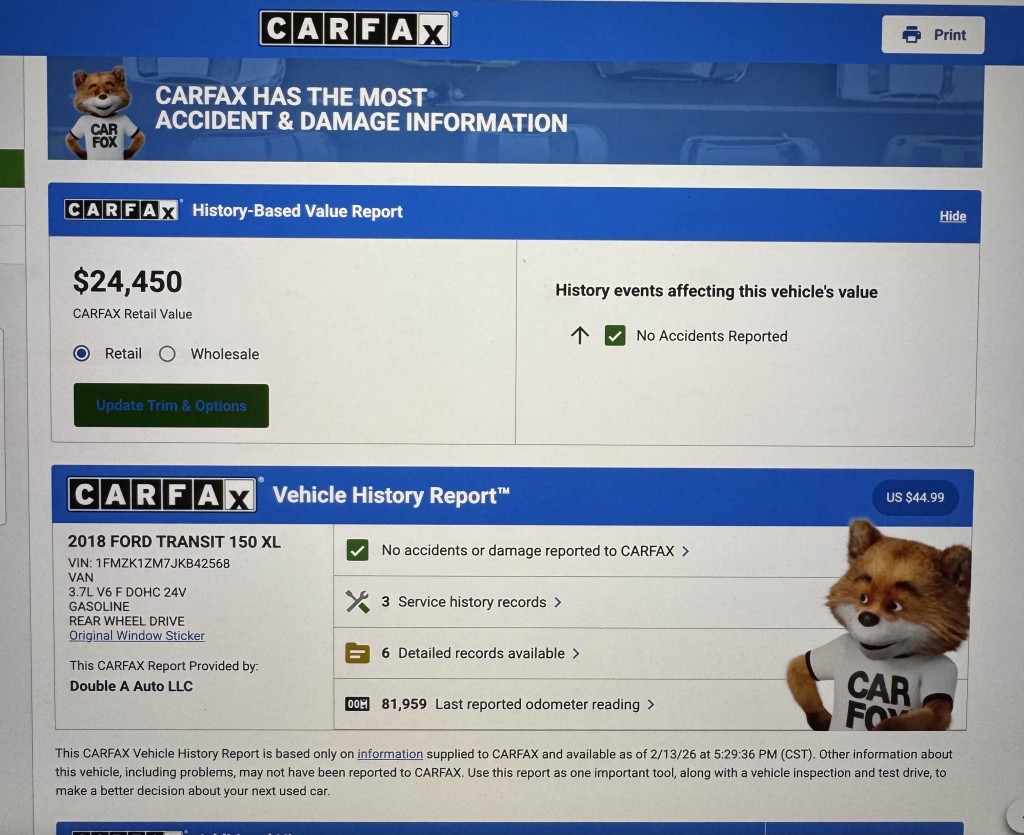 Clean title! 2018 Ford Transit Passenger Van. No accidents. Clean carfax. Clean Oregon van with no odors and non smoker. Runs and drives great. 8 passenger with tons of room for storage. Backup camera. Cruise control. Bluetooth. Power options. Power windows, locks, keyless entry with two fobs. Tires and brakes are still good. Priced to sell fast. Ready for its new owner!